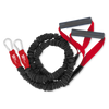 FitCord bands are high-quality resistance bands designed with your safety in mind. We cover the rubber tubing to preserve the integrity of the band for a longer lifespan and protection for you if the band breaks. We manufacture the medium strength resistance bands here in the USA and use the highest quality materials so you get the highest quality product for about 40% less than other resistance bands of its kind. The covered bands are latex allergen-free since there is no contact with the band at all. This band is designed to be very versatile and can be used in over 100 exercises.
